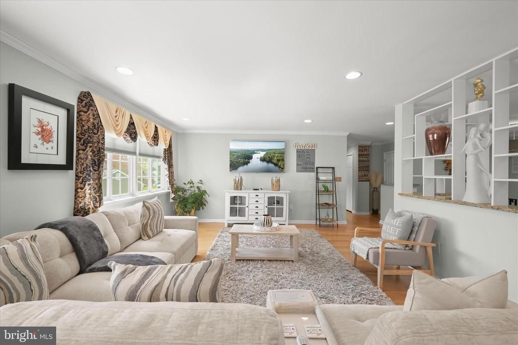 Welcome to 1 Southview Court, an exceptional property offering remarkable flexibility with a luxurious main residence and connected two-story guest home ideal as a private in-law suite or potential short-term rental. Designed for both comfortable everyday living and memorable entertaining, the home is complemented by resort-style outdoor amenities including an in-ground pool, multiple decks and patios, and inviting gathering spaces throughout. Inside the main residence, rich bamboo flooring, crown moldings, and abundant natural light create a warm and welcoming atmosphere. The living and dining rooms feature a decorative accent display wall that adds character and style to the space. The eat-in kitchen is thoughtfully designed with gleaming porcelain tile flooring, granite countertops, an expansive breakfast bar, sleek stainless steel appliances, and a convenient microwave nook. The main-level primary bedroom offers a private retreat with a walk-in closet and en-suite full bath, while a second suite also features its own en-suite bath and access to a covered side deck overlooking the pool perfect for morning coffee or evening relaxation. A powder room and an attached garage, currently configured as an additional living area, complete the main level. The lower level of the main home expands the living space with a comfortable family room anchored by a cozy wood-burning fireplace flanked by built-in shelving, porcelain woodgrain tile flooring, and direct access to the pool and patio. A third bedroom, full bath, laundry room, and bonus room provide additional flexibility for guests, hobbies, or workspace. The connected guest home offers its own private entrance and an impressive layout beginning with a dramatic two-story foyer. The upper level hosts a spacious living room with views of the pool, along with an elegant en-suite bedroom featuring balcony access, custom closets, and a luxurious en-suite full bath. The lower level showcases a stunning kitchen equipped with a waterfall center island with breakfast bar, decorative backsplash, stainless steel appliances, a track door leading to a walk-in pantry, and a casual dining area highlighted by a charming bay window. This level also includes an additional bedroom, bonus room, full bath, and direct access to the pool and patio. Outdoor living is equally impressive, featuring a sparkling in-ground pool, expansive patios and decks, covered seating areas, a bar area for entertaining, a side pergola, secure storage, a fenced backyard, and a welcoming covered front porch. With its unique layout, flexible living options, and resort-like outdoor spaces, 1 Southview Court offers a truly special place to call home.