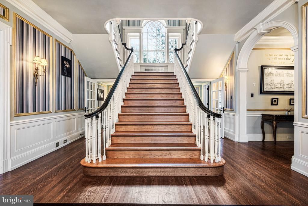 Designed by the Philadelphia firm of Savery & Scheetz for its wealthy industrialist namesake, the Houstonia mansion impresses at every turn. No detail was spared in this 22-room estate - you'll find all of the grace and charm of the time period intact with tasteful and modern updates, making the home both a lovely endeavor in preserved history and well-suited for today's discerning buyer. With an incredible amount of original architectural elements whose quality in craftsmanship and detail is a rarity in today's builds, the home is quintessentially Neoclassical. Ascend the bluestone terrace with Juliet balcony & soaring 2-story portico & discover its grandeur. French doors open onto a magnificent reception hall, whose wide stair & Palladian window half-story landing fills the space below with natural light. Gleaming hardwood floors, handsome wainscoting, detailed millwork, pocket doors, stunning light fixtures & quality materials set the tone for this home. A very large, full-depth living room with gorgeous soapstone hearth fireplace is located to the hall's left. It serves as a lovely gathering room, providing access to both the terrace & sunroom. To the right of the center hall, you'll find the office & an arched passageway to the home's beautiful dining room with a second soapstone hearth fireplace. The generously-sized butler's pantry with beverage refrigerator, a second dishwasher and abundant storage is adjacent, followed by the kitchen with gorgeous cabinetry, stainless steel built-in kitchen aid appliances, huge island, and many gourmet amenities! A mudroom is located just beyond the kitchen & makes a lovely transition to the back stair hall and side porch entry. The stairs provide convenient & informal access to the bedroom wing above; here you'll find 5 bedrooms, a den, 3 full baths, laundry room & stair access to the 3rd story. Continue across the main stair hall to find the sizable owners suite with en suite bath, large dressing room which formerly served as a sleeping porch walk-thru closets. The finished 3rd story includes a bedroom suite ideal for guest or perhaps an au pair, bonus rooms, walk-in cedar lined storage rooms, and a billiard room which now serves as a fabulous family room. A large, detached carriage house with three heated garage bays is located on a separately deeded tax parcel and is included with this property. The carriage home residence serves perfectly as an in-law suite, or a rental. With hardwood floors throughout, it boasts an eat-in kitchen, great room, family room, 2 bedrooms, hall bath and deck. With five acres of gorgeous private grounds, including a former green house, Houstonia is also surrounded by an oasis of township parkland in Wallingford. This location provides convenient access to the Philadelphia Airport, SEPTA train stations, Media Borough, and a myriad of retail and commercial centers.
