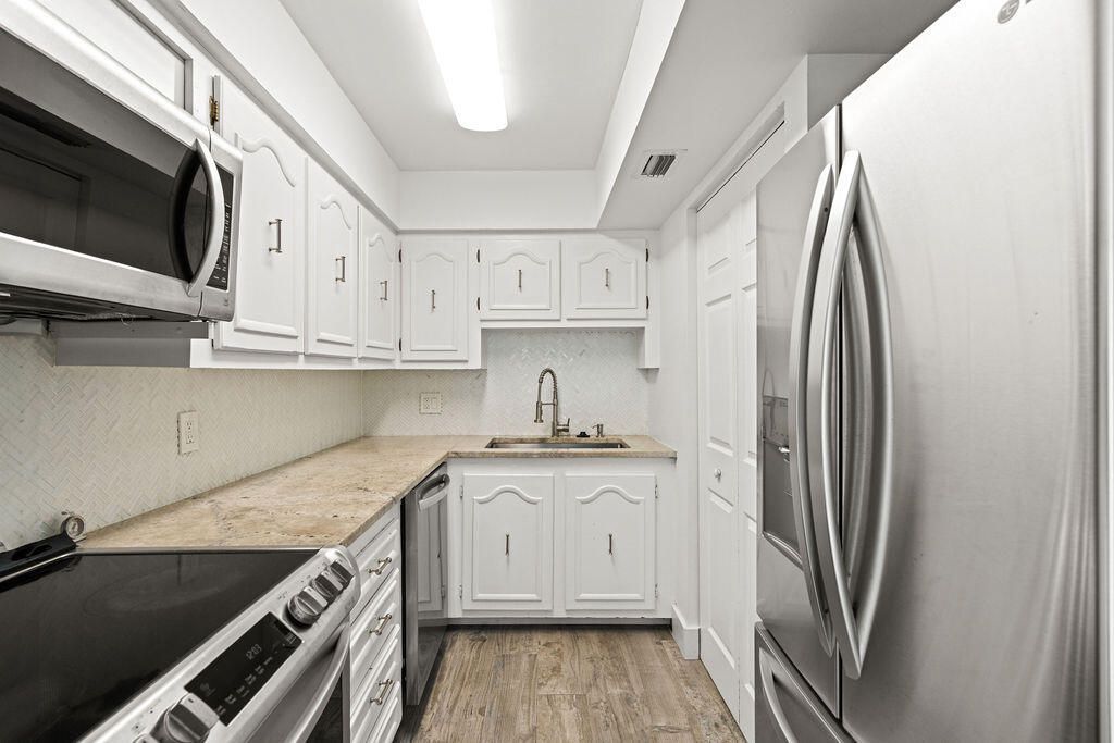 Enjoy quiet, poolside living in this completely remodeled ground-floor condo in the Gardenway community. Tucked away from street noise and just steps from the pool, this unit offers comfort, convenience, and move-in ready ease. This 1-bedroom, 1-bath home features tile flooring throughout and an enclosed porch that adds valuable extra living space. The updated kitchen includes newer stainless steel appliances and a deep sink, while the spacious bedroom offers a large walk-in closet and a renovated en-suite bath with a walk-in shower. Additional highlights include custom blinds, remote-controlled ceiling fans, a brand new in-unit washer and dryer, and keyless entry. Available immediately.