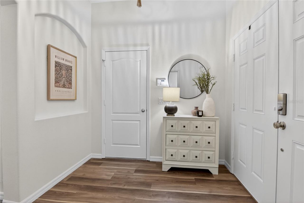 Welcome to this move-in ready 4-bedroom, 3-bath home in the highly sought-after Lake Nona community of The Enclave at Moss Park. Thoughtfully designed with a rare tri-split floor plan, this layout offers exceptional privacy-separating the primary suite from the secondary bedrooms, making it ideal for families, guests, or a quiet home office retreat.From the moment you walk in, vaulted ceilings and an abundance of natural light create a bright, welcoming atmosphere. New flooring and fresh interior paint give the home a clean, modern feel, while the updated kitchen truly anchors the space. Featuring stainless steel appliances, generous counter space, and a breakfast bar that opens seamlessly to the family room, it's perfectly designed for both everyday living and effortless entertaining.Standout features include fully paid-off, whole-house solar panels-delivering impressive energy efficiency and long-term savings-along with a whole-home water filtration system for added comfort and quality throughout.Step outside to a fully fenced backyard that offers both privacy and flexibility. Whether you envision weekend gatherings, space for pets to roam, or simply a peaceful place to unwind, this backyard is ready to fit your lifestyle.Enjoy resort-style amenities including a pool with cabana, playground, basketball court, picnic areas, and several green spaces.All of this in a prime location just minutes from Lake Nona Medical City, Orlando International Airport, top-rated schools, shopping, dining, and major highways. Stylish updates, smart energy savings, and a functional layout in one of Lake Nona's most desirable communities-this is the one you've been waiting for.