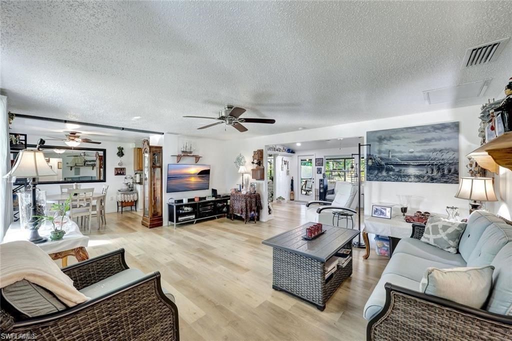 GULF ACCESS AT AN UNBEATABLE PRICE! This beautifully remodeled 2-bedroom, 2-bath home with a 1-car attached garage, setting on an oversized lot, offers the ultimate Southwest Florida boating lifestyle with your private boat dock and lift and just one turn to the Caloosahatchee River. Recent upgrades include a brand new elevated 2025 AC system, 2023 water heater, 2018 roof, upgraded granite countertops with stainless steel appliances, and a fully remodeled primary bathroom, giving the home a fresh, modern feel throughout. Inside you’ll find luxury vinyl plank flooring throughout with tile in the kitchen, along with a spacious family room addition filled with natural light and featuring impact windows and doors, while the remainder of the home is protected with aluminum hurricane panels. The kitchen showcases wood cabinetry, granite countertops, and upgraded appliances, while the beautifully updated primary bath features a sleek modern shower. Step outside to a large screened lanai and a spacious fenced backyard where you can enjoy peaceful waterfront living, fish right from your dock, or take in breathtaking sunset views. The backyard also features a convenient detached workshop/garage, providing additional storage and flexibility. Perfectly positioned in a quiet setting while still close to shopping, dining, and everyday conveniences, this home offers an incredible opportunity to own Gulf access living at an exceptional value.