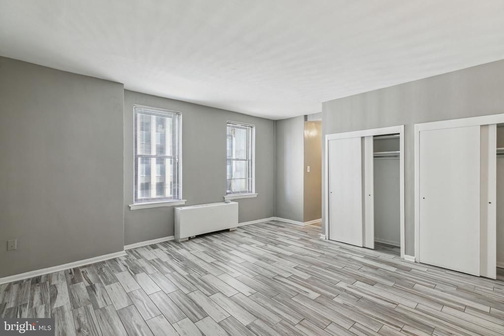 Recently renovated studio with sunrise city views to the east at The Wellington on Rittenhouse Square. There is a kitchen nook with white cabinetry, a window, and like-new appliances. Both the kitchen and the large, brand new bathroom feature grey ceramic tile floors. There is new recessed lighting throughout. Plenty of storage space including a wall of closets in the living area. The Wellington is a pre-war apartment building located on Rittenhouse Square offering a 24 hour doorman, on-site management, and access to a nearby fitness center at 1845 Walnut.