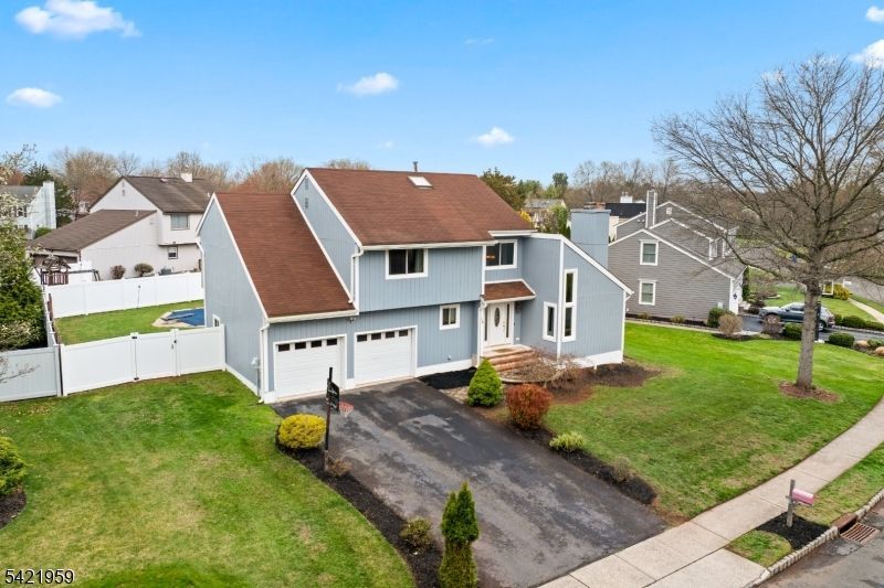 Welcome to this beautifully updated 4-bedroom, 3.5 bath Colonial with a 2-car garage, finished basement, deck, and in-ground pool, ideally situated on a quiet street in one of Hillsborough?s most desirable neighborhoods known for its top-rated schools. This home offers high ceilings, vaulted spaces, skylights, and an abundance of natural light throughout. A stunning family room with fireplace flows into the dining area, highlighted by soaring vaulted ceilings open to the second floor, creating a bright and inviting main living space. From there, the layout transitions into the eat-in kitchen featuring a center island, beautiful white cabinetry, and great functionality, then step down into a separate living room?offering a perfect balance of open flow and defined space. Both the family room and living room feature sliding glass doors that open to the brand new Trex deck, creating seamless indoor-outdoor living. Upstairs, the primary suite is enhanced by a beautifully renovated, brand new primary bathroom. The finished basement with a full bath provides flexible space for guests, recreation, or a home office. Recent updates include new flooring, fresh interior and exterior paint, and numerous additional improvements throughout. Enjoy the privacy of a 6-foot vinyl fence, a beautifully maintained in-ground pool, and a location close to parks, shopping, and major commuting routes?making this move-in ready home a standout opportunity.