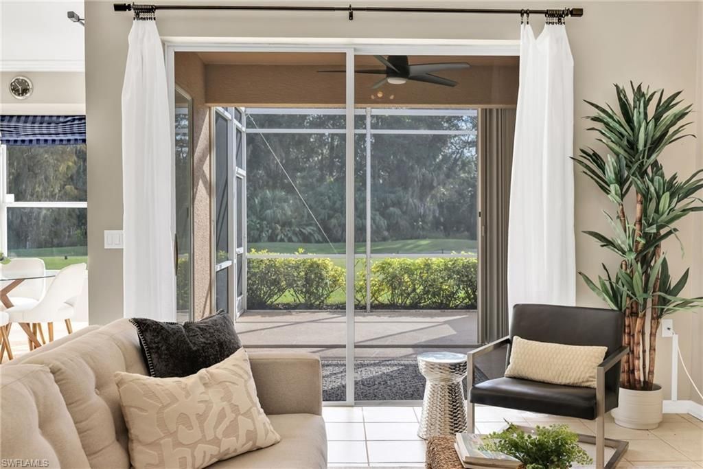 This newly updated 2 bed/2 bath golf villa in North Naples in Heritage Greens has everything you need for a modern SWFL living lifestyle. With its SOUTHERN exposure, the home is airy and bright with a beautiful golf course view on the 3rd hole; golf course living without the membership fees! This spacious villa has a large, screened front entry and an extended lanai in the rear of the home (views of both sunrises & sunsets), multiple dining/work areas and provides a peaceful setting that will never be interrupted by construction or obstructed views. With a large community pool/spa, workout facility, tennis courts, pickleball, putting green and well-lit sidewalks winding throughout the neighborhood you’ll be able to choose how to get your workout in any time of day. A gated community with family-friendly neighbors, you’ll immediately feel right at home. A second pool is a few steps away from your front door if you prefer more privacy. Need storage? It’s ample here with a double pantry, hallway closet and storage space in the oversized attached single garage. Pets and golf carts are welcomed. Flood Zone "X” - flood insurance not required. **HOA maintains roof – Fully furnished option. A TRUE GEM! Will go fast. Arrowhead Golf Course, a full-service public golf facility with a golf pro shop, a PGA professional staff and gorgeous practice range, is located within the Heritage Greens community. It offers an 18-hole golf course, an onsite bar/restaurant (with inside/outside seating) and private lessons if you need to revisit the quality of your swing. Book play any time of year with homeowner privileges! Voted best public course for 18 years! With so many shops and new restaurants surrounding the area – Seed to Table, Logan Landings, Founder’s Square and Mercato, you’ll be happy to know you don’t have to drive far to socialize or shop. Close to the Gulf beaches which gives you the quintessential Naples Florida life you’ve been dreaming about! Great investment w/12 rentals/yr., 30-day min. and no waiting period. (Current property taxes reflect non-homestead status and will be significantly lower for an owner-occupant who files for Homestead exemption.)