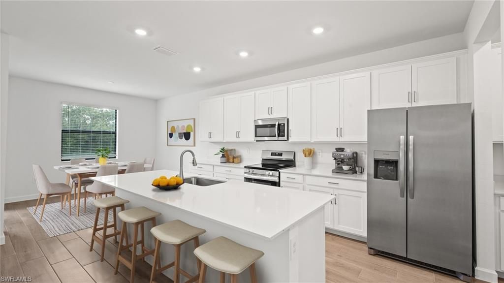 One or more photo(s) has been virtually staged, AI generated or rendered. Bayshore Ranch is a community offering a stunning selection of new single -family homes for sale in North Fort Myers, FL. Right in the neighborhood are numerous picnic areas to soak in the fresh air. Hang out at the Event Barn or Oak Porch, which features beautiful indoor and outdoor space perfect for special occasions. This expansive two-story home is the largest plan in the collection. On the first floor is a living room, formal dining room, open living space with a kitchen, bedroom suite and an attached lanai for outdoor activities. Upstairs hosts the owner’s suite, three secondary bedrooms and a cozy loft overlooking the Great Room. Prices, dimensions and features may vary and are subject to change. Photos are for illustrative purposes only