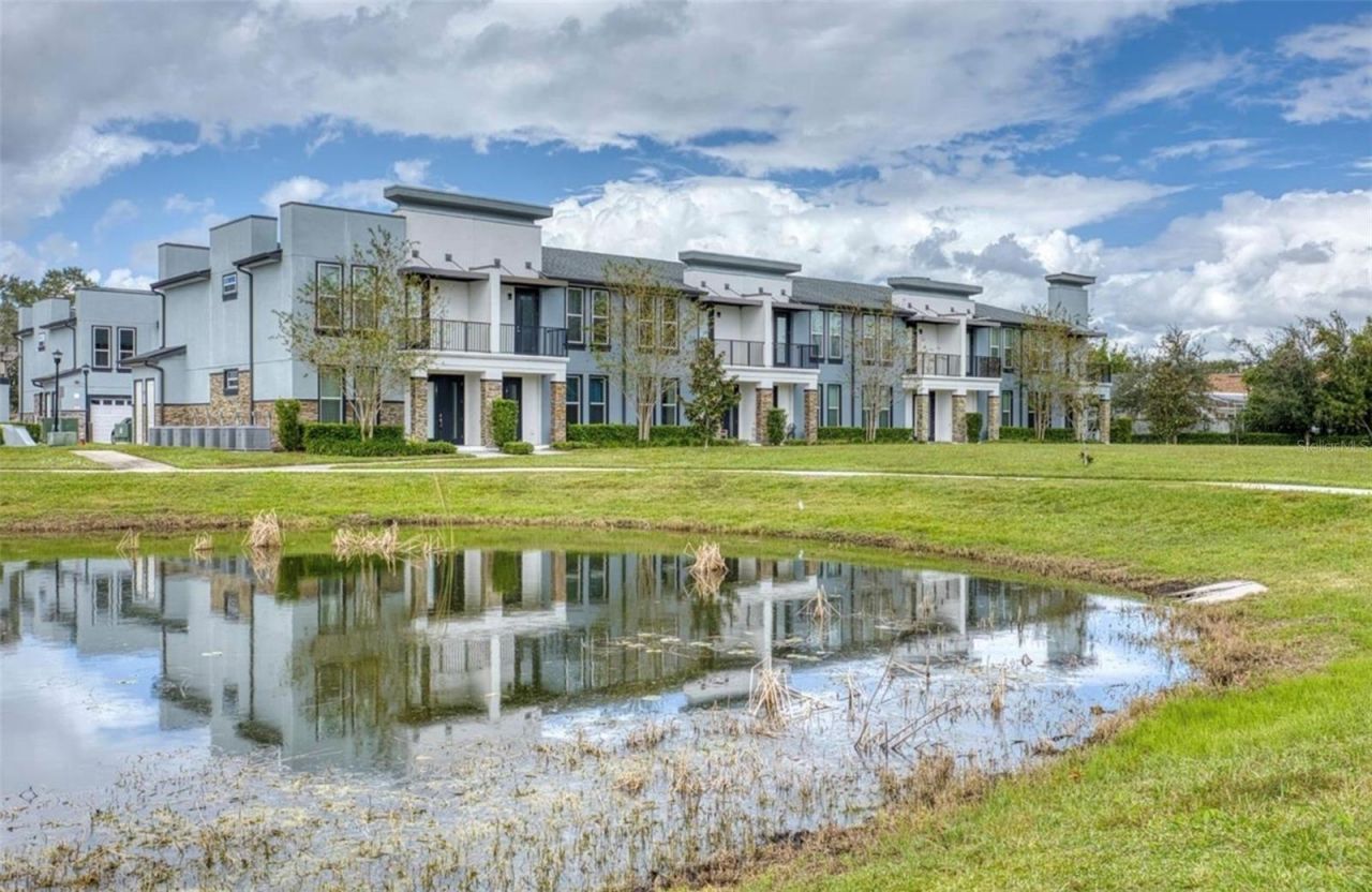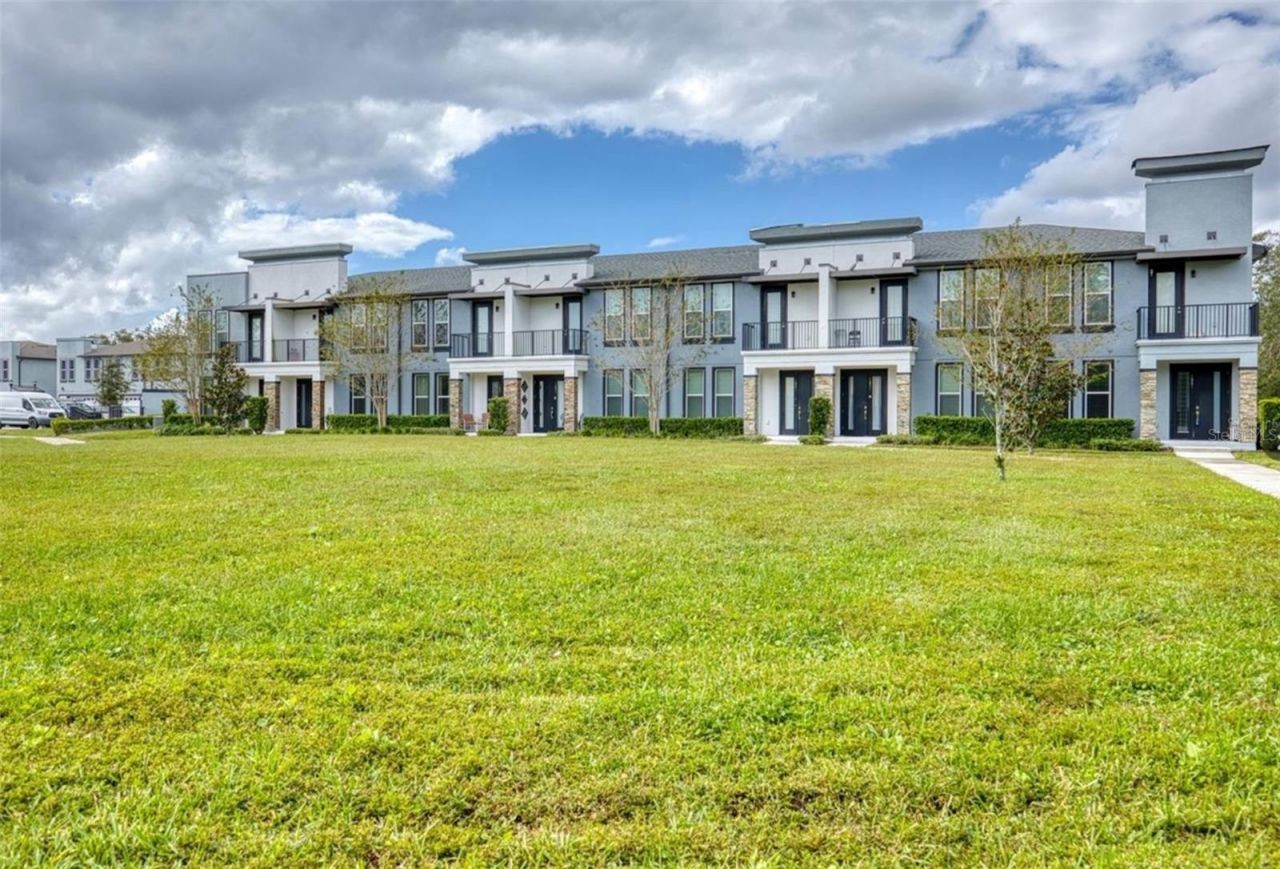This 3-bedroom, 2.5-bathroom townhouse is located in the modern SoHo at Lakeside development. It's move-in ready and awaiting your personal touch. The open floor plan downstairs includes a large kitchen island, creating a perfect space for entertaining guests. The kitchen boasts 42 high cabinets, a tiled backsplash, granite countertops, and white appliances. Upstairs, you'll find three bedrooms, including a spacious master suite with separate his and hers closets, a large bathroom with double sinks, and a private balcony. The home is bright and airy with high ceilings and large picture windows. Convenience is at the forefront, with two separate entrances: the front door and a service door to the two-car garage. The quiet community offers Basic Cable & Internet, a pool, a dog park, and a scenic walking path. Plus, it's just minutes from Florida's Turnpike and a short drive to Osceola Parkway.