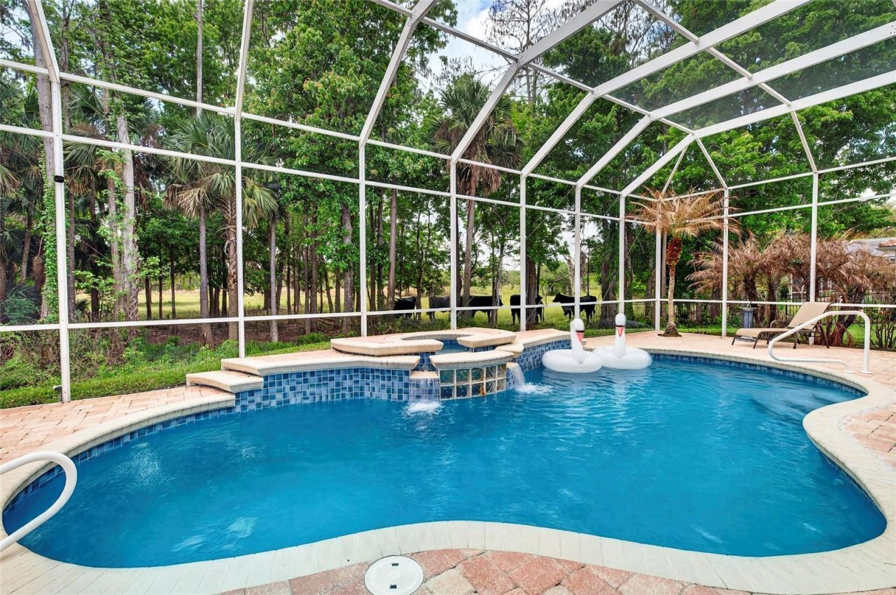 Welcome to your private estate in the prestigious, gated Spruce Creek Fly-In, an exclusive aviation community where refined luxury meets serene sophistication. Perfectly positioned on nearly half an acre within the coveted Reserve Estates, this turnkey pool home offers an exceptional blend of elegance and comfort. Thoughtfully designed with an expansive open-concept layout, the residence showcases soaring ceilings and walls of windows that bathe the interiors in natural light, creating an atmosphere of effortless grandeur.As you step inside, you are immediately captivated by sweeping views that draw your gaze through the home to the resort-style pool beyond. Framed by lush surroundings, the outdoor setting offers a rare sense of serenity and privacy, with an idyllic backdrop that enhances the home's tranquil ambiance. Just beyond the fence line, gentle pastureland adds a touch of charm, where neighboring cows occasionally wander over to the fence, offering a delightful, storybook moment as they eagerly greet you for a treat.Designed with both elegance and privacy in mind, the residence features a true split-bedroom floor plan, creating distinct and peaceful retreats throughout. The primary suite is thoughtfully positioned for ultimate seclusion, offering a luxurious sanctuary complete with two spacious walk-in closets. The spa-inspired bath is beautifully appointed with a wall-to-ceiling tiled walk-in shower and a deep soaking tub-perfect for indulgent relaxation.At the front of the home, a refined office space, easily convertible to an additional bedroom, is bathed in natural light from expansive windows, creating an inviting and sophisticated workspace. On the opposite wing, two well-appointed guest suites provide comfort and privacy, one featuring a full en-suite bath ideal for hosting. An additional bathroom with direct pool access enhances the home's seamless indoor-outdoor living experience.At the heart of the residence, the thoughtfully designed kitchen blends style and functionality, showcasing abundant cabinetry, an oversized island, and a generous pantry, perfectly suited for both intimate gatherings and grand entertaining. Upstairs, an expansive bonus suite offers endless versatility, complete with its own full bath, making it ideal for a private guest retreat, media room, executive office, or bespoke living space tailored to your lifestyle.This home isn't just a place to live; it's a lifestyle. Embrace the luxury, comfort, and community of the Spruce Creek Fly-In. Don't miss the opportunity to make this exquisite property your own!