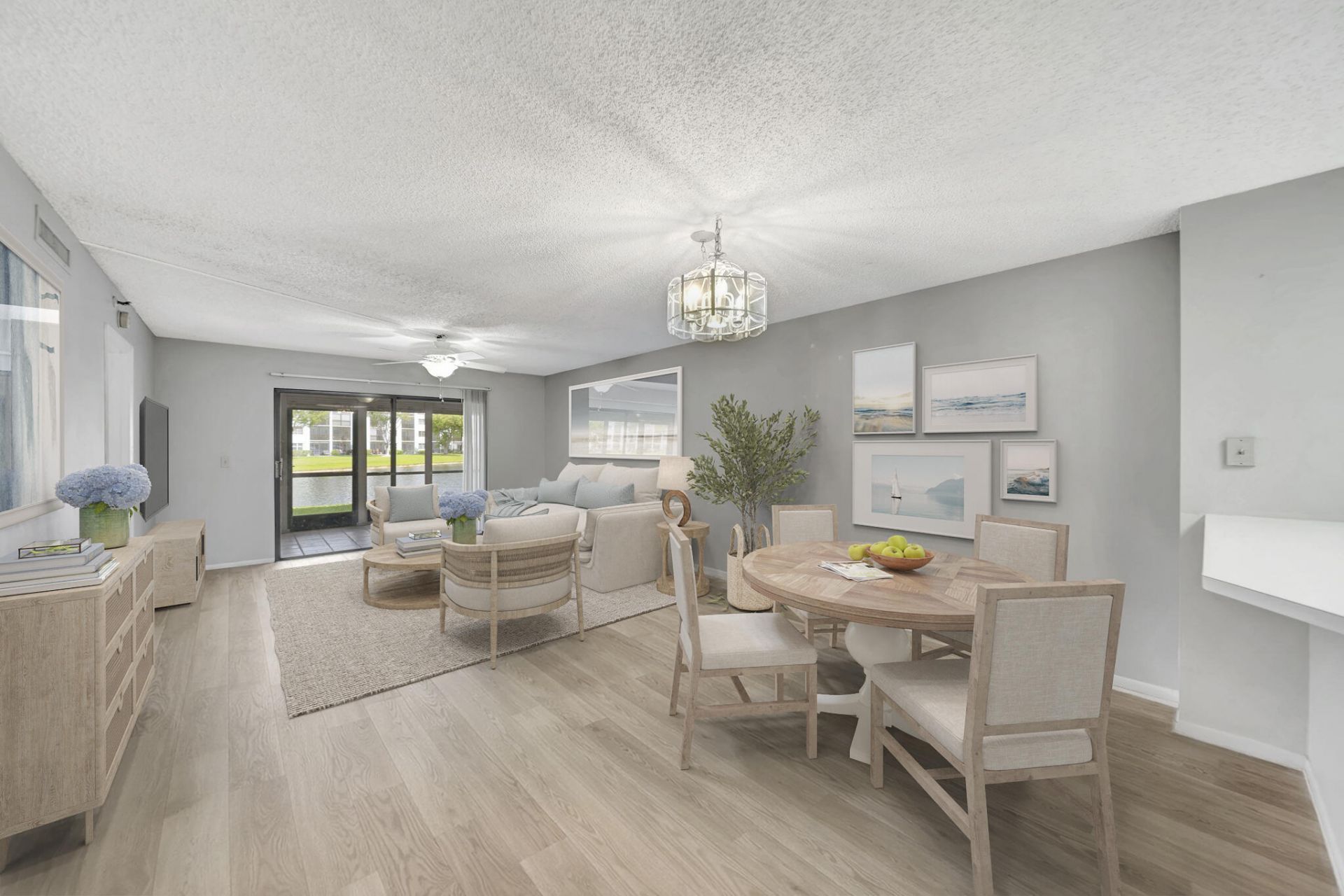 Live in a beautifully maintained community with serene lake views from your living room & screened patio. This spacious 2-bed, 2-bath residence features stunning Mexican tile flooring throughout and includes a dedicated laundry room & abundant storage space. The expansive open floor plan is ideal for entertaining, complemented by a large eat-in kitchen. The primary suite offers direct access to the patio, tranquil water views, & a generous walk-in closet. A well-sized second bedroom & guest bath provide comfort & flexibility for visitors. Residents enjoy access to a variety of amenities, including a swimming pool, basketball & tennis courts, car wash areas, and a clubhouse, all perfect for a social lifestyle. Don't miss this rare first-floor unit- ready for you to make it your own!