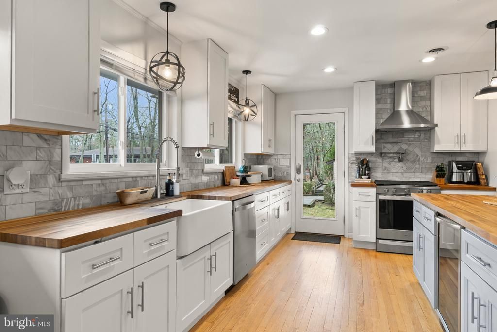 This beautifully updated 4-bedroom, 3 full bathroom rancher offers the perfect blend of style, comfort, and functionality, complete with a fully finished walk-out lower level (with approximately 1,300 additional square feet of living space) and a stunning two-level screened-in porch. The kitchen is a true showstopper, featuring oak butcher block countertops, soft-close cabinetry, a pot filler, farmhouse sink, and a built-in wine fridge. A spacious breakfast bar provides ample seating and opens seamlessly to the inviting living room, highlighted by a charming brick wood-burning fireplace. A sliding glass door leads to the upper-level screened-in porch, with convenient access to the attached one-car garage. To the right of the front entrance, you'll find a well-appointed full bathroom with a tub/shower combo, along with a coat closet and cedar closet for additional storage. The main level also features three generously sized bedrooms, including a primary suite with its own private bath. Downstairs offers approximately 1,300 square feet of additional finished living space, including a fourth bedroom, a third full bathroom, and a second wood-burning fireplace. Radiant heated flooring on this level ensures year-round comfort. Another set of sliding glass doors lead to the lower-level screened-in porch overlooking the backyard - perfect for relaxing or entertaining and indoor/outdoor living in the spring, summer, and fall seasons! The basement also includes a versatile finished bonus room with built-in shelving, ideal for storage, hobbies, or a creative workspace, as well as an unfinished utility area with additional storage and a laundry room with washer and dryer. A floored attic provides even more storage space, completing this thoughtfully designed and move-in ready home.