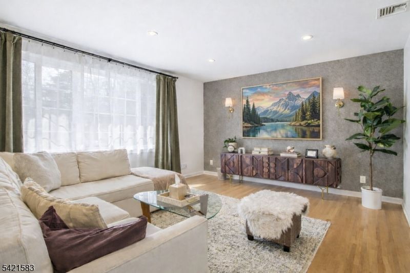 Located in the highly sought-after Garden Oval, this beautiful split-level home offers great curb appeal, modern updates, and a park-like setting. Step inside to find a bright and inviting living room that flows seamlessly into the formal dining room. The dining room leads to a large deck overlooking a fully fenced backyard with firepit and a patio below. Upstairs are three bedrooms including a primary suite with a walk-in closet and bathroom. The ground level includes a family room with access to the two-car garage and backyard, while the basement provides ample storage and laundry. Recent upgrades include smart garage openers, EV charger, security cameras, outdoor electrical outlet, smart smoke & carbon detectors, and a built-in outlet for a Frame TV.Ideally situated near premier shopping, transportation, and major highways enjoy easy access to local grocery stores, shops, and NJ Transit all within 10 minutes. This turnkey Garden Oval residence combines comfort, style, and smart enhancements with spacious living areas and a serene outdoor setting, all in a location that makes commuting and everyday errands effortless.
