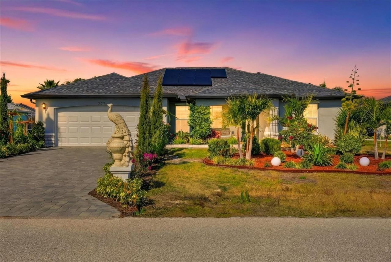 Welcome to your Florida paradise in beautiful Punta Gorda! This four-bedroom, two-bath home offers 1,829 square feet under air and is designed for comfort, sustainability and outdoor living. Enjoy a heated swimming pool with a waterfall and fountain, surrounded by lush, fully landscaped grounds featuring stunning sculptures and approximately 20 mature fruit trees, along with a fertile vegetable garden, ideal for farm-to-table living. The home is equipped with solar panels providing free electricity, a whole-house water purification system and a full irrigation system, making it eco-friendly and efficient. Inside, you'll find beautiful custom-made window blinds imported from Turkey, adding elegance and character throughout the home. Outdoor garden furniture is included, and all interior furniture may convey at buyer's option, making this a move-in-ready opportunity. Just 15 minutes from Charlotte Harbor and the world-famous Sunseeker Resort, this property offers a balance of privacy, convenience and resort-style living. A rare opportunity to own a home that has it all, comfort, beauty and sustainability.