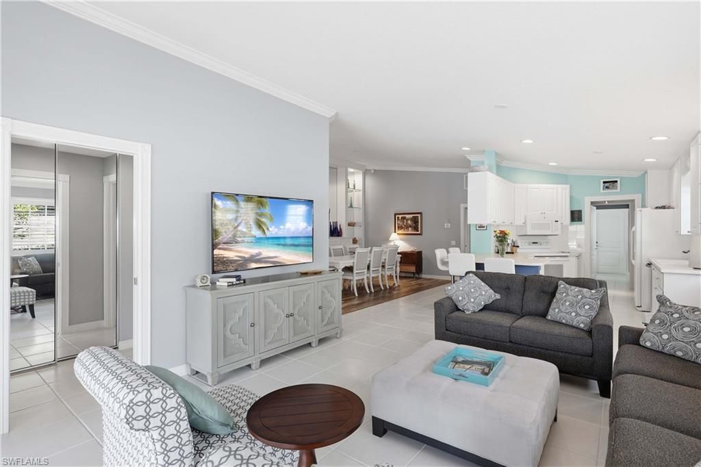 Discover this beautifully maintained Capri villa, ideally positioned to capture tranquil lake views within the highly sought-after community of Island Walk. Tucked away on a quiet, no-through-traffic street and featuring desirable southeastern exposure, the home is filled with natural light and offers a bright, open floor plan designed for both relaxed living and effortless entertaining. The outdoor living area is a true highlight, showcasing a private heated pool and a screened lanai with motorized, Bluetooth-enabled storm shutters for added convenience and peace of mind. Recent enhancements include a newer roof—an important advantage for insurance—fresh exterior paint, and elegant crown molding that provides a refined finishing touch throughout. Life at award-winning Island Walk offers the perfect balance of vibrant social energy and peaceful retreat. With an abundance of amenities and activities, residents can be as active and engaged as they choose within this welcoming community. Low fees add exceptional value, covering HDTV and high-speed internet, as well as lawn and landscape maintenance and irrigation—all with no CDD. At the heart of the community, the Town Center features resort-style and lap pools, seven Har-Tru tennis courts, four pickleball courts, a state-of-the-art fitness center, putting green, and bocce courts. Residents also enjoy the convenience of an on-site post office, the popular Casa Cotzelli restaurant, a gas station, car wash, and full-service hair and nail salons. All just minutes from world-class dining, shopping, and the beautiful Gulf beaches—your home in paradise awaits. information prepared with care but subject to error buyer to verify