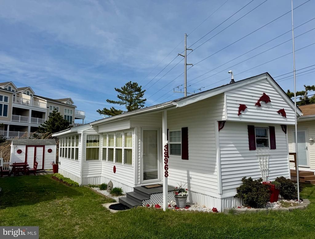 Enjoy the best of coastal living! This charming seasonal bay-side retreat is perfectly situated with easy walking access to the beach just across the street. Located in idyllic Summertime Park, residents enjoy a private sandy bay beach and pier, ideal for boating, fishing, crabbing, kayaking, or enjoying breathtaking sunsets. This well-maintained mobile home offers 3 bedrooms and one full bathroom plus an outdoor shower, perfect after a day at the beach. Relax and entertain on the spacious 3-season porch or patio area, a great setting for summer gatherings. Seasonal community open March 20 through November 5, with current land lease rate of $10,517 per season. Don't miss this opportunity for affordable beach living - this turnkey getaway is being sold fully furnished and as-is, ready for the summer.