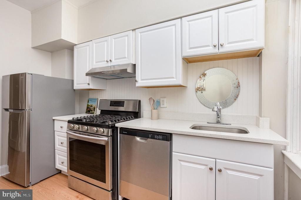 This beautiful freshly painted, porch-front rowhouse, offers the perfect blend of character & contemporary updates. Step through the foyer, and into the elegant French doors lead into a cozy living room with mahogany inlaid hardwood floors, then flow into a separate dining area—ideal for hosting formal dinners. The stylish, modern kitchen is built to impress with Quartz countertops and stainless steel appliances, including a refrigerator, range, dishwasher, and pot racks—perfect for cooking and entertaining. You can circle back to the foyer from the kitchen. Upstairs, you’ll find 3 generously sized bedrooms with newly refinished hardwood floors and a full bath. The partially finished lower level offers flexible space for a family room, office, 4th bedroom or workout area, along with a half bath, laundry, and additional storage. Out back, enjoy a private fenced yard and covered rear porch—a great setup for BBQs, outdoor dining, and letting pets play. Stay comfortable year-round with central air (2026) and efficient, recent radiator heat. With central AC installed in 2026, gleaming hardwood floors (refinished 2025), and abundant natural light streaming through modern windows (2023), this home is move-in ready and awaits its new owner. Ask us about down payment and closing cost grants—you might be able to own this home for less than you pay in rent! Schedule your showing today!