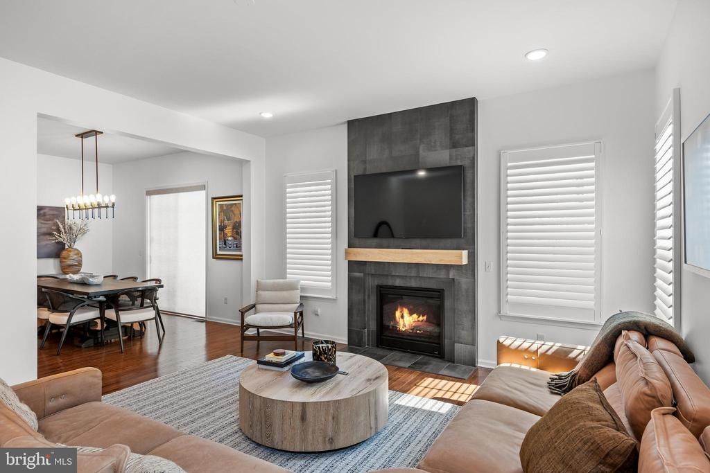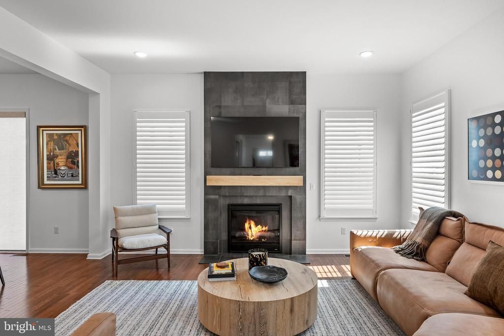 Rarely does a property of this caliber come to market. Positioned as a coveted end unit within an impeccably maintained planned community — caddy corner from the clubhouse — this architecturally refined two-story townhouse represents the pinnacle of elevated, low-maintenance living. Freshly painted throughout, the residence offers a seamless fusion of thoughtful design, high-end finishes, and an abundance of natural light that must be experienced firsthand. Soaring 9-foot ceilings on all levels set an immediate tone of grandeur. The dramatic entry foyer announces the home's intention: a soaring staircase bathed in cascading sunlight from oversized statement windows create a gallery-worthy first impression. Rich hardwood floors flow throughout the main level, guiding you effortlessly through an intelligently conceived open floor plan. A dedicated home office — thoughtfully separated from the primary living areas — offers a refined retreat for focused work. The living room anchors the home with a dramatic custom floor to ceiling fireplace ceramic enclosure with natural wood mantle gas fireplace, flanked by shuttered windows. The circular flow transitions naturally into the dining area, where a sculptural designer chandelier commands the room above a generous table for eight. Slider doors open to a private landing, presenting an ideal canvas for an al fresco patio. The kitchen is nothing short of a chef's showcase. Crisp white shaker cabinetry, complemented by quartz countertops, a subway tile backsplash, and a premium suite of stainless appliances including a double wall oven, gas range, and built-in microwave. The oversized island — with double sink and counter seating — serves equally as a gathering space and a culinary workstation. Full-extension drawers and soft-close hardware speak to the thoughtful design. A powder room completes the first floor. Ascend the dramatic staircase — illuminated from above by arched windows and crowned with a statement chandelier on the upper landing — to discover three generously proportioned bedroom suites, each appointed with premium carpet and shutters. Two en suite bedrooms offer private baths and large walk-in closets. The primary suite is a sanctuary unto itself: a tray ceiling treatment adds architectural distinction, while the spa-caliber bath delivers a large walk-in glass shower, deep soaking tub, private water closet, and double-sink vanity. Two walk-in closets and a dedicated linen closet complete this private retreat. The semi-finished basement — with soaring ceilings and recessed lighting — offers extraordinary flexibility. Two generous storage closets provide abundant organization, while a roughed-in, capped plumbing bay stands ready to be transformed into a half bath, seamlessly completing additional finished living space. The mechanical suite includes a high-efficiency dual-zone HVAC system with smart thermostats, forced air heating and cooling, gas hot water heater, 200-amp electrical service, and a French drain with sump — engineered for worry-free ownership. An attached two-car garage, recessed lighting throughout, custom shutters on every window, and a prime walkable location moments from upscale shopping and with effortless access to Philadelphia complete this offering.