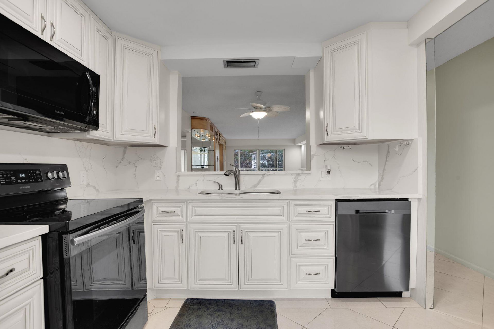 This property is situated near the 18th hole of the golf course and features a desirable north-facing exposure. It is offered furnished for the seller's convenience, but can also be made available unfurnished. Key features include a brand-new water heater (installed in 2026), an air conditioning system installed in 2015, and a remodeled kitchen completed in 2019. The unit is fully carpet-free. Patio enclosed with both Metal shutters & Plexiglass. The 4701 association has designated this building as a non-smoking area, both inside the apartment and outside. Additionally, rentals are not permitted. A new roof was installed in 2024, and there is a beautiful new elevator. There are no pending assessments. Excellent budget. Park in assigned pkg #148-Vacant