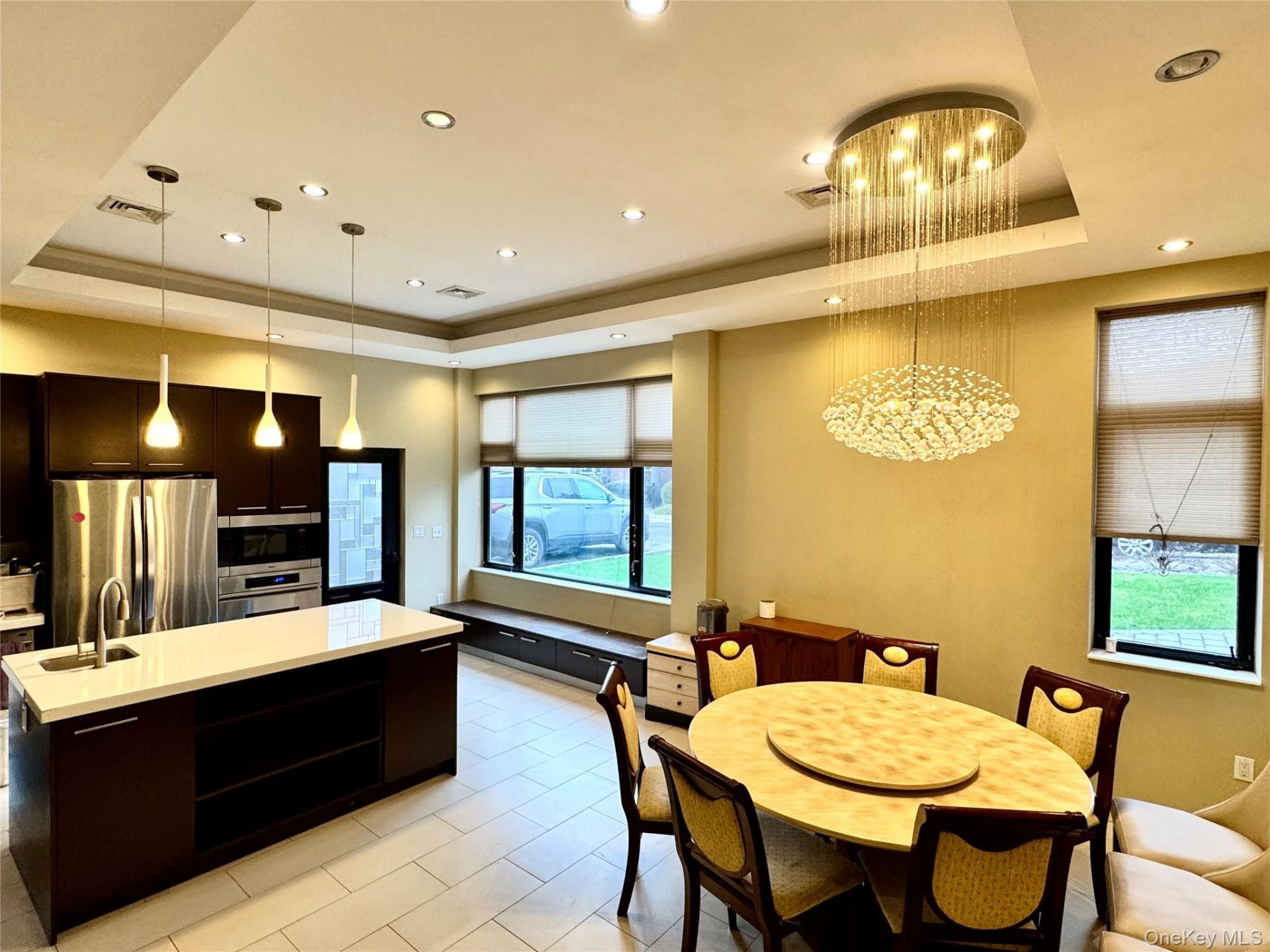 Stunning modern contemporary home with a sleek cubic design, showcasing a striking blend of brick, stone, and horizontal siding. Clean architectural lines, flat roof, and expansive windows create a bold and upscale presence. Finished with modern metal railings and thoughtfully designed outdoor spaces, this home offers both style and functionality. This custom-built luxury residence, built in 2012, offers approximately 2,412 sq ft of interior living space, with a total zoning floor area of approximately 3,862 sq ft.The home features 5 spacious bedrooms and 4.5 bathrooms, thoughtfully designed for both comfort and refined living. The gourmet chef's kitchen is equipped with high-end Miele appliances and a LG refrigerator, perfect for both everyday use and elevated entertaining. Radiant heated floors in all bedrooms and living & dinning room.The primary suite offers a walk-in closet, private balcony, and a luxurious spa-like bathroom complete with a steam room, creating a true retreat.Outdoor living is thoughtfully designed with a covered entertaining pavilion, complete with a barbecue station and built-in sink, creating the perfect setting for outdoor cooking, dining, and gatherings. The covered structure allows for comfortable year-round use, making it an ideal extension of the living space.Additional highlights include custom floating stairs, imported natural stone finishes throughout, a striking chandelier centerpiece, central air conditioning, a finished basement, and a detached garage with electric door and driveway. Conveniently located near shopping, dining, and transportation, with easy access to Northern Boulevard. Walking distance to Little Neck train station.A rare opportunity to own a truly distinctive luxury home in a prime Little Neck location.