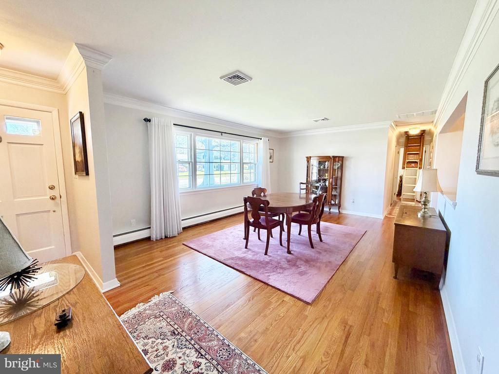 Here’s a polished, listing-ready version of your description that flows better and highlights the home’s strengths: A true gem and rare find! This beautifully maintained 3-bedroom, 2 full bath ranch showcases pride of ownership throughout. Featuring a full finished basement and an attached 2-car garage, this home offers both comfort and functionality. Step into a spacious living room filled with natural light from a large triple front window, complemented by crown molding and gleaming hardwood floors. The eat-in kitchen boasts stainless steel appliances, a double sink, tile backsplash, crown molding, hardwood flooring, and a convenient peninsula bar—perfect for casual dining. All three bedrooms feature hardwood floors and ceiling fans. The primary suite includes his-and-hers closets and a private full bath with a shower stall. A formal dining room with a charming casement bay window overlooks the serene backyard and is accented with crown molding. Additional highlights include central air conditioning, newer gas baseboard heating, and pull-down attic stairs for extra storage. The fully finished 24x24 basement provides ample space for recreation, while the family room offers direct access to the attached garage and opens to a large patio through sliding doors—ideal for indoor-outdoor living. Enjoy a beautifully landscaped exterior with a newer paver front walkway and a peaceful backyard setting. Located in the highly desirable Cranbury school district, with access to Princeton High School.