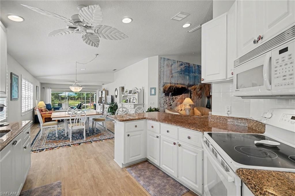 Enjoy living at its finest in Islandwalk...a community with some amazing amenities that is conveniently located to shopping, golf courses, highways and restaurants. This Capri model villa has so much to offer! Step into a beautifully maintained open living space with updated flooring and fresh paint throughout, an updated kitchen with granite counter tops and an open concept floorplan that makes for easy, comfortable living. The dining area is open to the kitchen and living room. The spacious and bright living room offers beautiful lake views. The open den provides added living space to be used as an extra living space or an office. Wake up in the large primary suite with peaceful lake views and an updated ensuite with dual sinks and shower. The 2nd bedroom is private at the other end of the home with an updated full bathroom. Step outside to your newly screened and extended lanai with gorgeous lake front views. An awning allows for a large shaded area from the hot sun and the other half of this lanai allows you to bask in the sun with that peaceful lake view. Youll want to spend all day and evening out there! An attached two-car garage, with tile flooring, is a huge bonus. Islandwalk offers a fabulous restaurant, community pool and clubhouse, a gas station, salon and post office. Its like a city within a city! Tennis, pickleball and a putting green round out your amenities. Walk your day away with plenty of sidewalks and beautiful bridges throughout the community or stop to enjoy the afternoon at the gazebo with a beautiful and peaceful lake view. You wont be bored here. Come and check out this piece of paradise today!