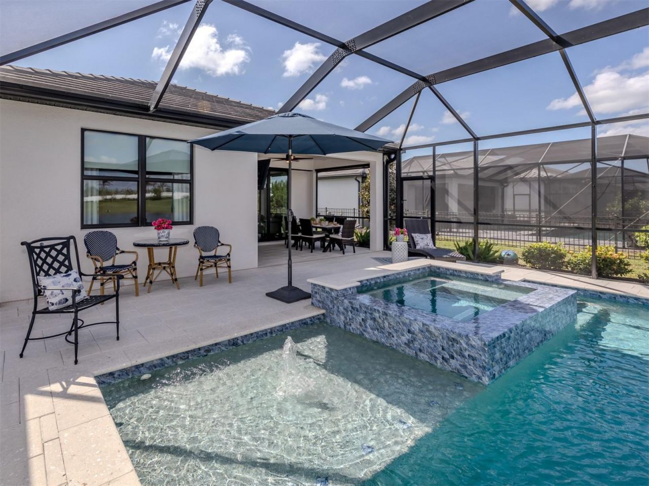 Experience luxury living in this beautiful home! 3 bedroom/2 bathroom home with a custom outdoor pool/spa. Lovely water views out the back. This home is located inside the gated community of Talon Preserve on Palmer Ranch. It is a close walk, super convenient to all the resort style amenities. NO CDD FEES for this highly sought after community. This home features IMPACT GLASS in all windows and doors. Walking up to the front door you will see a custom cypress tongue and groove ceiling at the entryway. Upon entering the full view glass front door, you are welcomed with the warmth of the sunlight throughout the home. Features like 9 ft ceilings and 8 ft doors add a spacious feel to the home. Upgraded cabinetry, tile, lighting and quartz counters. Stainless steel appliances with a NATURAL GAS oven to boot. Hinkley lighting pendants and dinette fixtures add customization to the kitchen island and dining table. The primary bedroom is generous size and boasts a beautiful view of the lanai, pool and lake. A large, frameless glass shower with built in bench and a double vanity makes the primary bath a spa like experience. The triple 8 ft pocket slider door in the back of the home leads to a custom heated saltwater pool and spa designed and built by SUPERIOR POOLS. The lanai enclosure feature a panoramic view of the large lake and was designed and built by ABSOLUTE ALUMINUM. A tongue and groove cypress ceiling in the lanai was added in 2025 matching the front entryway ceiling. From the moment you enter though the Talon Preserve gates, you will be impressed with the beautiful, lush landscaping and design of the homes and amenities that make living here feel like a dream come true. You will experience resort style living in Talon! The 18,000 sf clubhouse features a large indoor bar. The highlight of the amenity center is the HIDEAWAY outdoor TIKI Restaurant and Bar next to a large resort style heated pool with rock waterfall, beach entry and swimming lap lane. In addition, the amenity center offers pickle ball, bocce ball, tennis, playground, workout facilities and an arcade. WOW! What also brings many buyers to our community is the easy access to I-75 and Nokomis Beach! Talon also features private direct access to the Legacy bike trail. Super convenient to shopping and downtown Venice. Sarasota Memorial Hospital is approximately 4 miles down the road with additional medical sites being built. It's all here! Come see why Talon Preserve on Palmer Ranch is almost SOLD OUT! OWNER is also the Listing Agent!