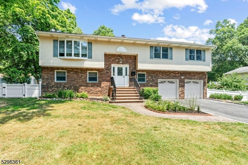 This expansive custom bi-level home, located on a tranquil street, features a two-car built-in garage and a spacious six-car driveway. The ground floor includes a large bedroom, a full bath, and a beautiful family room with a wood-burning fireplace. The upper floor offers a primary bedroom with an en-suite bathroom, three additional bedrooms. Step inside to discover an inviting open-concept floor plan where the center island flows seamlessly into the dining area and living room. Various lighting colors in the family room, living room, kitchen, and dining room create a relaxing atmosphere. The outdoor area is perfect for entertaining, featuring a large deck, a huge patio, and a garden backyard. A white vinyl fence provides privacy and elegance.