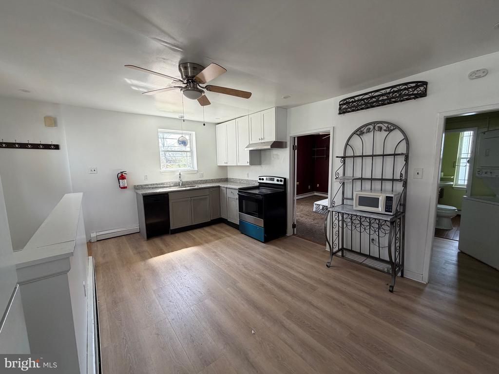 3BR, 1Bath, 2nd Floor Apartment available in Logan Township! This apartment sits on top of the owner's garage that is only used for storage; this is a duplex property but Apartment B is in a separate building in back. Recently updated kitchen with 42" upper cabinets and Granite Counters, newer appliances, including built in microwave over the electric range and a Dishwasher in unit; Stackable laundry machines also in unit; very efficient gas boiler for heat, window units for AC. Kitchen has space for breakfast table; the Great Room offers a (propane) fireplace and space for dining set as well. 3 decently sized bedrooms and a full bathroom complete the unit. There is reserved parking in the driveway for Unit A that can fit 3 cars in line. This area is served by highly sought after Logan Twp schools thru 8th grade and sends to Kingsway Regional High 9-12. Excellent commuter location with Route 295 around the corner, and reach area bridges, or Route 42 or NJ Turnpike in 15-20 minutes. Owner looking for good credit and reliable income; pets may be accepted for excellent applicants All adults in family (including adult "children" of applicant who are 18 yo+) MUST apply and provide credit report / eviction check. We are set up for Rent Spree but will review any prior application you have before requiring you to pay for a new check.