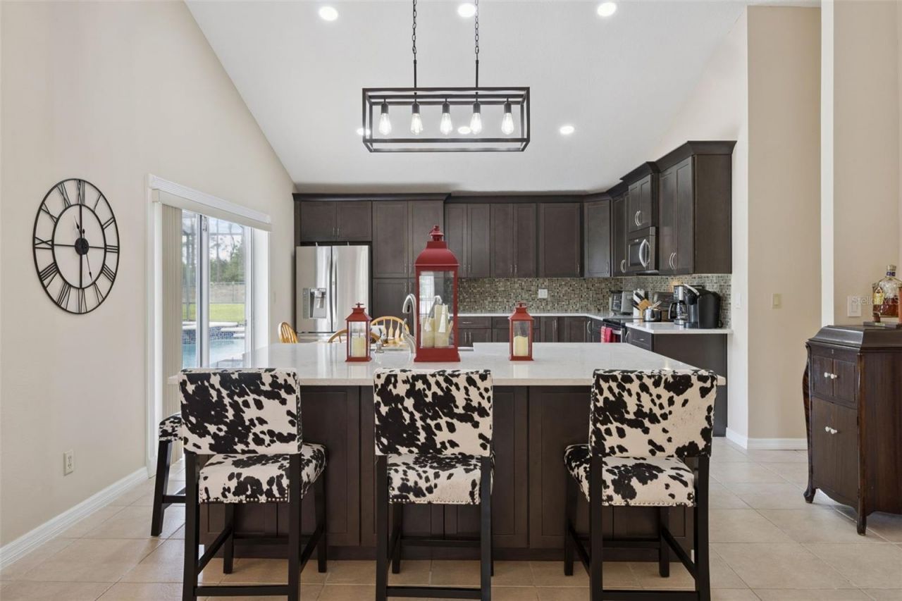 Welcome to your private Clermont country oasis! This impeccable 3-bedroom, 2-bath pool home sits on nearly 3/4 of an acre and offers a bright, open floor plan filled with natural light. The stunning, fully renovated gourmet kitchen is truly the heart of the home, featuring oversized cabinetry, stainless steel appliances, granite countertops, an attractive backsplash, and an expansive island-perfect for both everyday living and entertaining.The spacious primary suite offers a peaceful retreat with sliding glass doors leading directly to the pool, a private en-suite bath with a large walk-in shower, ceiling fan, oversized walk-in closet, and brand-new carpet. The split floor plan provides added privacy, with bedrooms two and three also featuring ceiling fans and new carpeting. A second full bathroom includes a convenient tub/shower combination, and a large hallway storage closet adds extra functionality.Enjoy the tiled, open living and dining areas, along with a generous laundry room complete with stainless steel washer and dryer and a utility sink. Step outside to your fully screened, heated pool-ideal for relaxing or hosting gatherings year-round.Additional highlights include a side-entry three-car garage and the freedom of no HOA. This beautifully maintained property combines comfort, space, and privacy-truly a must-see!