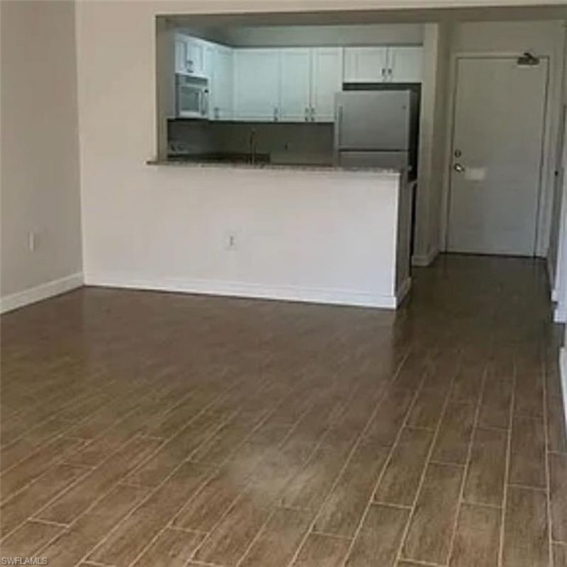 Welcome to Key Royal Condominium This first-floor residence , lake view, features two bedrooms and one bathroom, offering both comfort and convenience within a secure, gated community designed for resort-style living. Upon entry, you will find elegant wood flooring throughout, a breakfast bar ideal for casual dining, and a spacious walk-in closet in the primary bedroom. The private patio provides the perfect setting to enjoy the Florida lifestyle, whether for morning coffee or evening relaxation. Residents of Key Royal benefit from exceptional amenities, including a community swimming pool, fitness center, and clubhouse. The property is ideally situated in North Naples, providing easy access to premier shopping, dining, and the area’s renowned beaches.