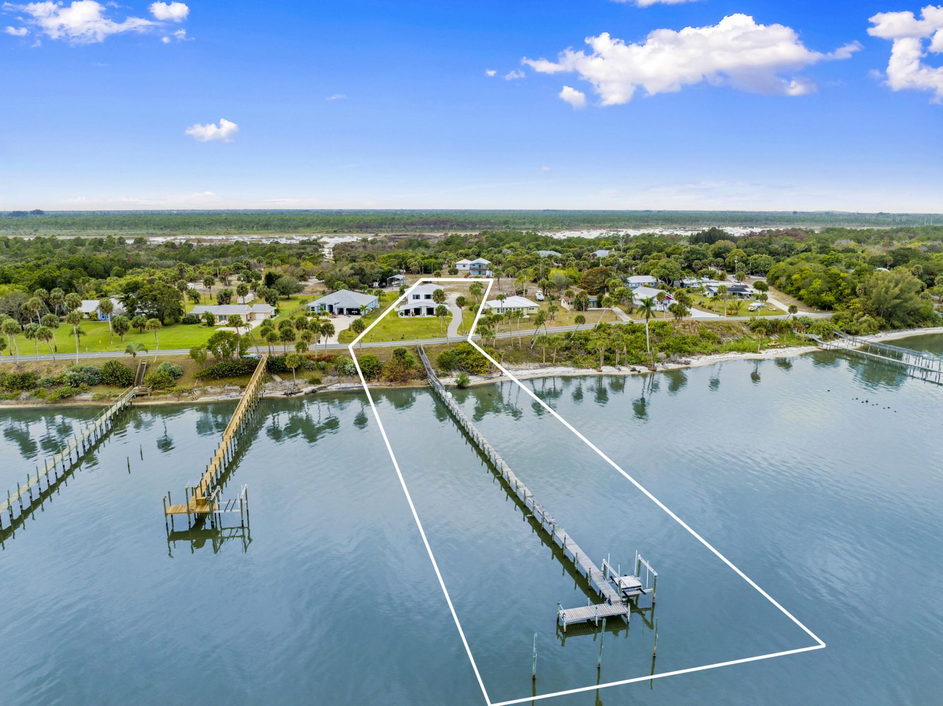 This is what Indian River Drive living is supposed to feel like. Set on 1.15 acres with 95 feet of direct river frontage, this reimagined contemporary estate delivers along one of Florida's most iconic scenic routes. Every inch of this two-story residence blends timeless character with modern luxury across 5 bedrooms, 3 bathrooms, and over 2,700 square feet of living space. Inside, volume and texture take center stage. Soaring cypress plank ceilings and original terrazzo floors ground the home in authenticity. The kitchen is anchored by quartz countertops, an antique island, gas range, stainless steel appliances, open shelving, and a designer tile backsplash. Impact windows throughout capture breathtaking river views from nearly every room. Recent upgrades include a 2024 metal roof, 2025 water heater, 2018 A/C, and a 125-gallon whole-house diesel generator for year-round peace of mind. Upstairs, a fully equipped private apartment offers exceptional versatility with a private entrance, two bedrooms, a full bath, spacious living area, kitchenette, in-unit washer and dryer, and its own porch overlooking the water. Outdoors, a covered patio with a summer kitchen and full outdoor bath is built for effortless entertaining, all set against a stunning riverfront backdrop. The private dock is dialed in with new water lines, 6-gauge electric, and a 20,000 lb. lift capable of accommodating up to a 40-foot vessel. A 2-car garage/workshop, attached 1-car garage, 2022 irrigation system, and a dedicated backyard septic system already in place for a future guest home or RV.